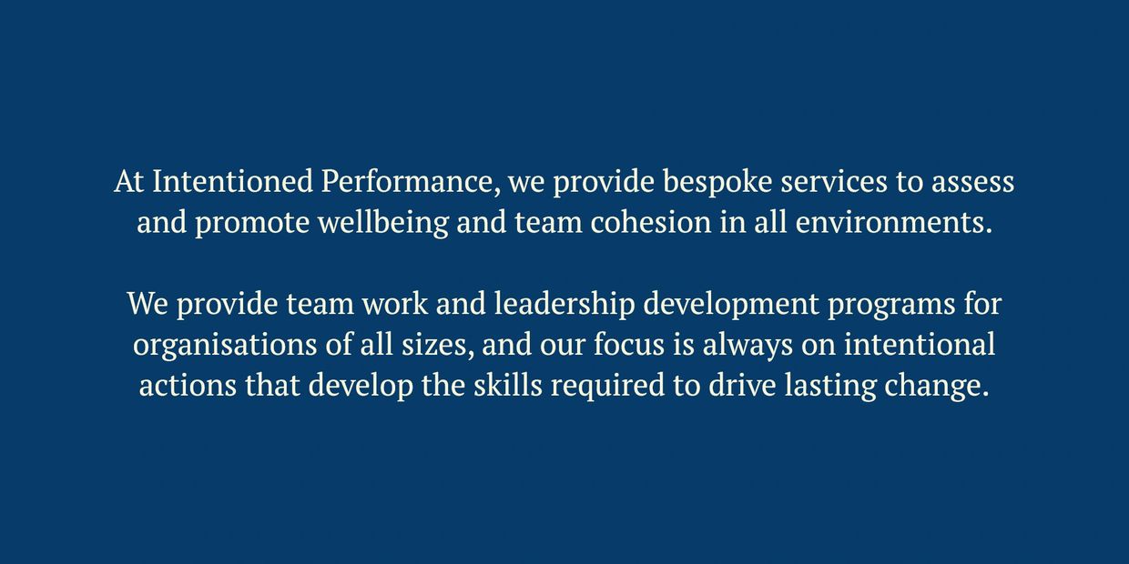 Intentioned Performance delivers services which enhance the experiences of team members and leaders alike.